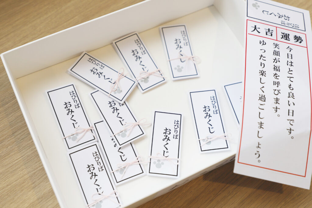 最後は「はぴりばおみくじ」を引いていただきました。結果に一喜一憂しながら、自然と会話も弾み、笑顔あふれる締めくくりとなりました。