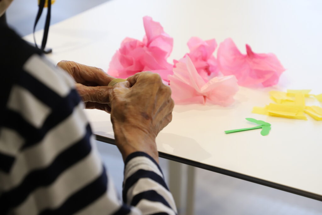 制作中は「きれいだね」「ここに貼ろうか」と自然と会話も弾み、みなさんの笑顔があふれる楽しい時間に🌟みんなで一つの作品を作り上げる喜びも感じられました。